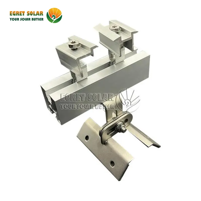 এগ্রেট অ্যাডজাস্টেবল সৌর ট্র্যাপিজয়েড ধাতব ছাদ মাউন্টিং স্ট্রাকচার এই নির্দিষ্ট ট্র্যাপিজয়েডাল ছাদে সৌর অ্যারেগুলির জন্য একটি নির্ভরযোগ্য সমাধান সরবরাহ করে Its সামঞ্জস্যতা এবং ডিজাইন অফার ইনস্টলারদের নমনীয়তা এবং দক্ষতা সরবরাহ করে।