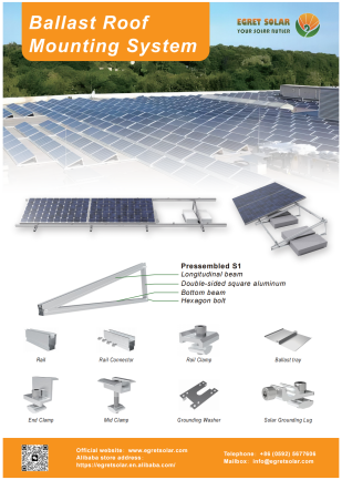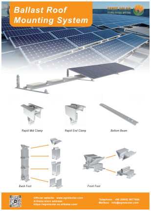এগ্রেট সোলার প্রদর্শনীতে অনেক নমুনা নিয়ে এসেছিল। প্রচারিত প্রধান পণ্যগুলি বিভিন্ন পরিবেশ অনুসারে আলাদা। সংক্ষিপ্ত রেল ব্র্যাকেট সিস্টেম, এল ফুট বন্ধনী সিস্টেম এবং সামঞ্জস্যযোগ্য সামনের এবং পিছনের ফুট সিস্টেম রয়েছে যা ধাতব ছাদে ব্যবহার করা যেতে পারে; কার্বন ইস্পাত মাউন্টিং সিস্টেম এবং সৌর কক্ষগুলির জন্য অ্যালুমিনিয়াম কারপোর্ট মাউন্টিং সিস্টেম; একক কলাম সহ গ্রাউন্ড মাউন্টিং সিস্টেম এবং স্থল ব্যবহারের জন্য ডাবল কলাম সহ গ্রাউন্ড মাউন্টিং সিস্টেম; টাইল ছাদ মাউন্টিং ব্র্যাকেট সাধারণত টাইলের ছাদগুলির জন্য ব্যবহৃত হয় এবং হুক এবং রেলটি প্রকৃত পরিস্থিতি অনুসারে নির্বাচন করা যেতে পারে; ব্যালাস্ট ছাদ মাউন্টিং সিস্টেম এবং ট্রিপড সিস্টেম সাধারণত সমতল ছাদের জন্য ব্যবহৃত হয়। আমাদের ইনস্টলেশন দৃশ্য, বাতাসের গতি, তুষার বোঝা, বাজেট ইত্যাদি বলুন এবং আমরা আপনার জন্য নকশাটি তৈরি করব। আপনি আমাদের সমস্ত হৃদয় দিয়ে বিশ্বাস করতে পারেন।